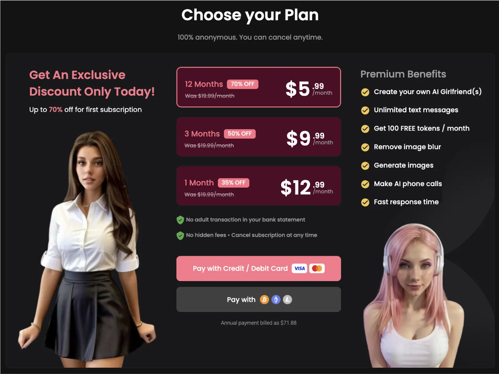 These affordable plans ensure that you can choose the level of experience that fits your needs and budget,whether you’re just starting out or ready to fully immerse yourself in the world of personalized AI companions.